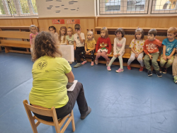 Lektorka Střediska Krnap Vrchlabí seznámila děti v rámci celoročního projektu enviromentálního vzdělávání se životem včel a celých včelstev. Děti si sestavily vývoj včely, dozvěděly se jaký je rozdíl mezi včelou a vosou i proč jsou včely pro náš život tak důležité.